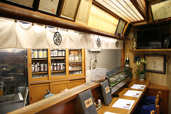 繁華街の中心にあり、外景とは違って気軽な雰囲気のお店です。女性1人でも気軽にお楽しみ頂けます。カウンター席、お座敷がございます。